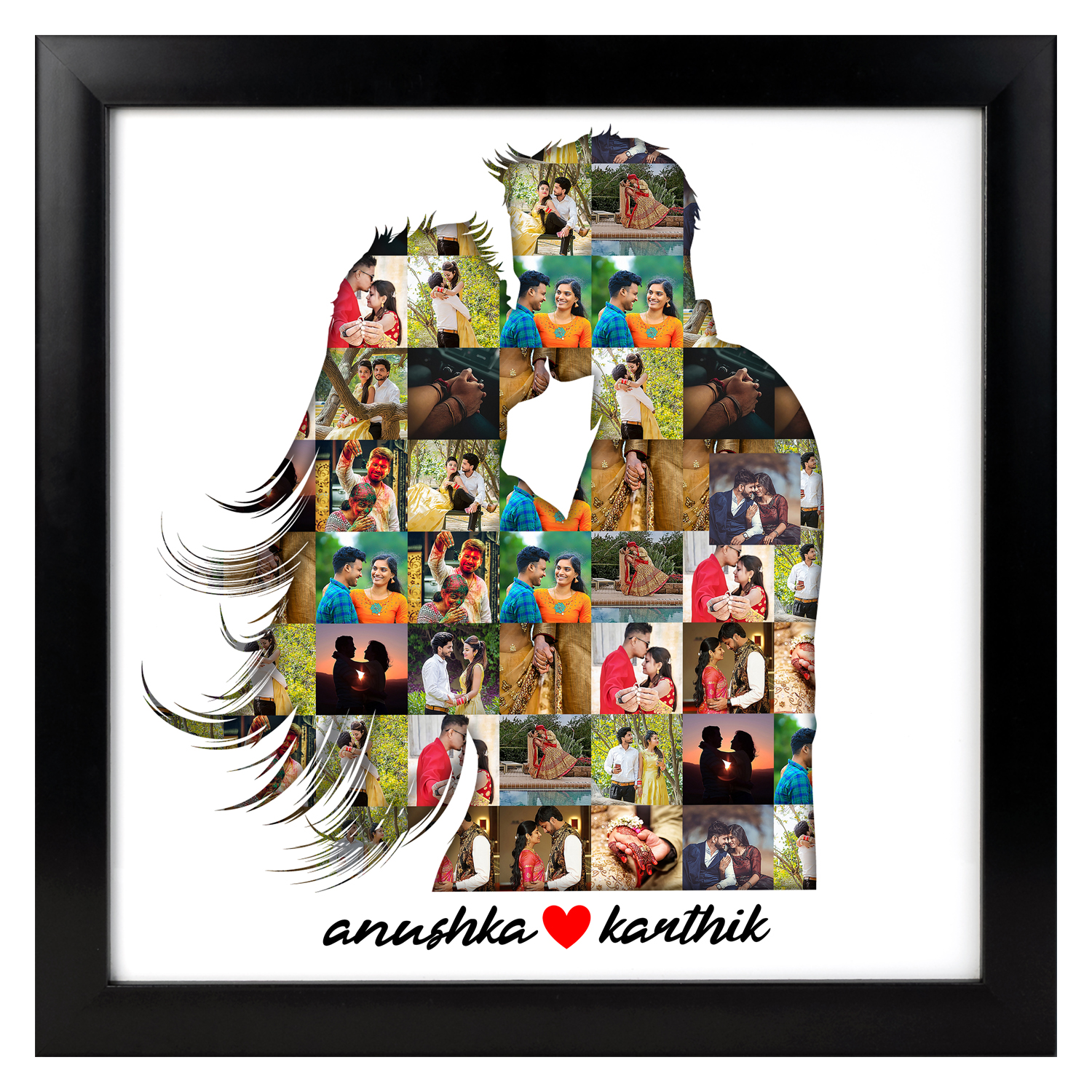 Capture the eternal bond of love with our “Endless Love Couple Silhouette Frame.” This unique and personalized photo frame is a beautiful way to showcase your special moments as a couple. With space for 15-30 photos and the couple’s names, this frame is designed to tell your love story in a truly distinctive way.
