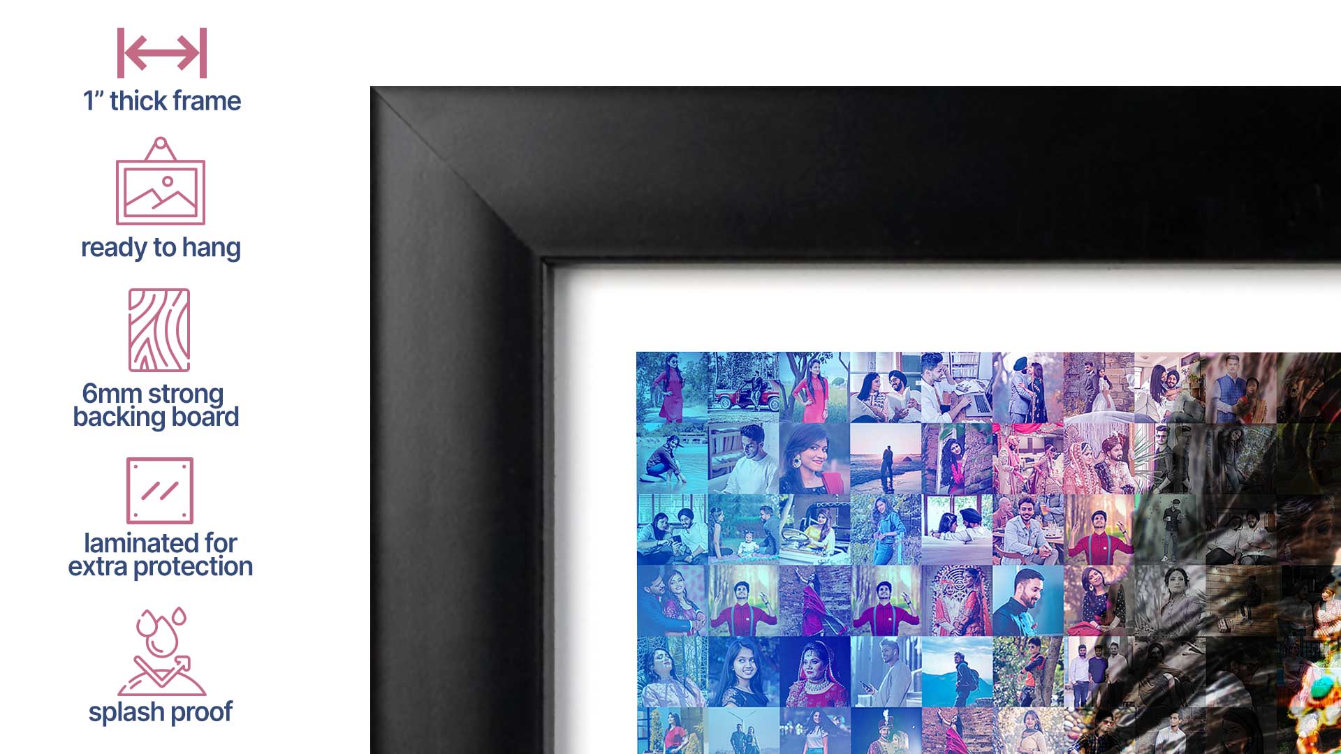 Our personalized mosaic photo frames are made with the finest quality materials. Made with 1″ thick frame and printed on industrial grade printers, our frames are designed to capture your photos for years to come.