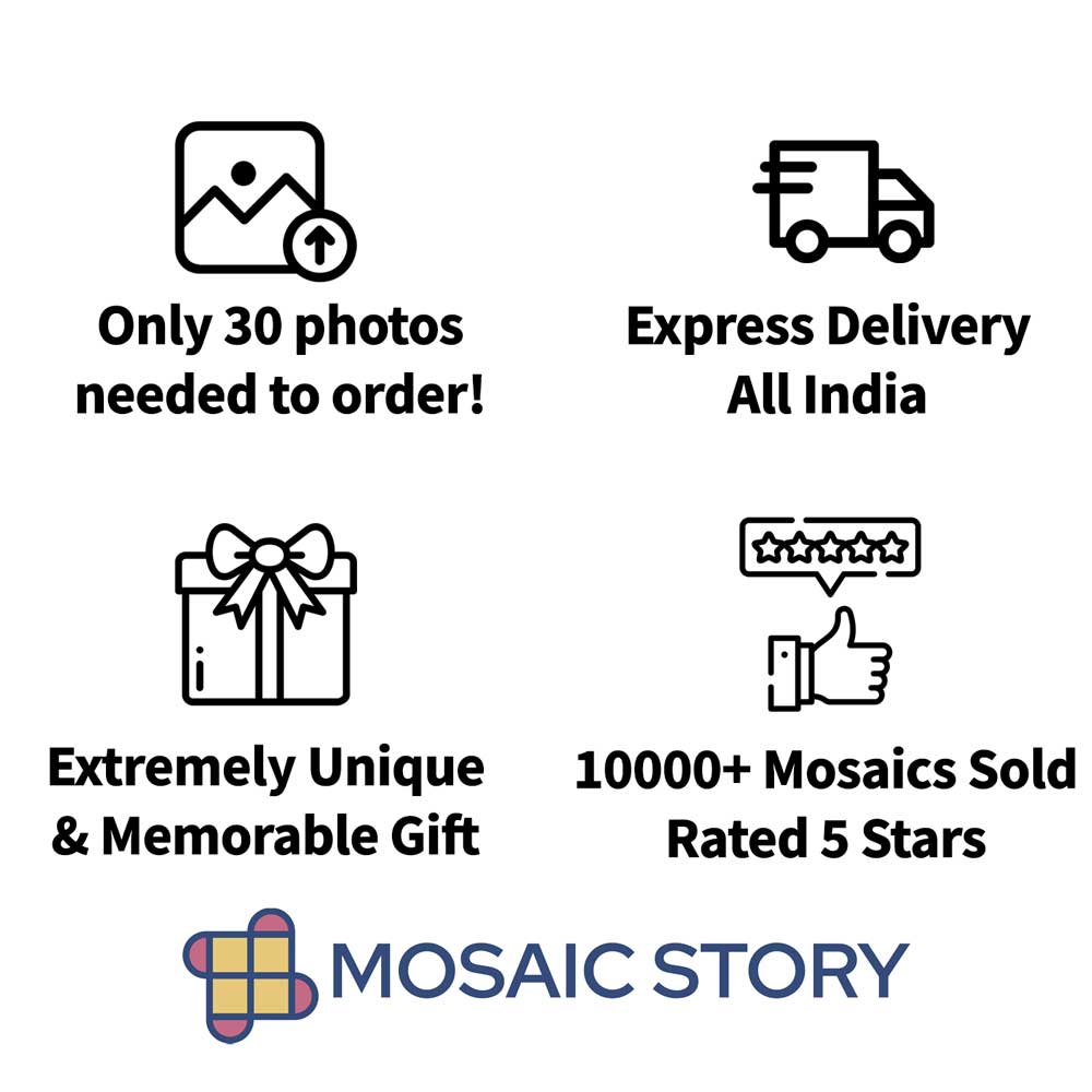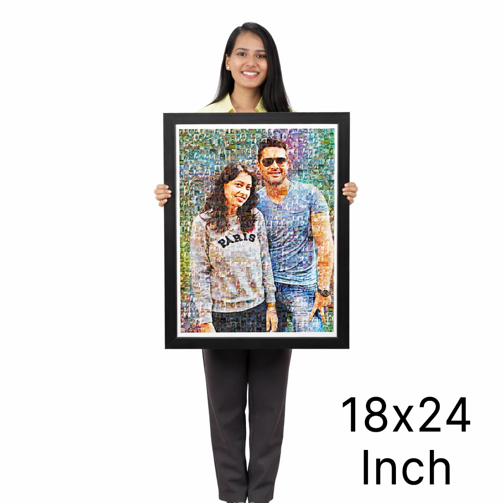 After we receive your photos, we will share a preview of your mosaic on your WhatsApp number within 24 hours. You can see the preview and give your confirmation. You can also request edits. We only print your mosaic photo frame and dispatch after your confirmation.