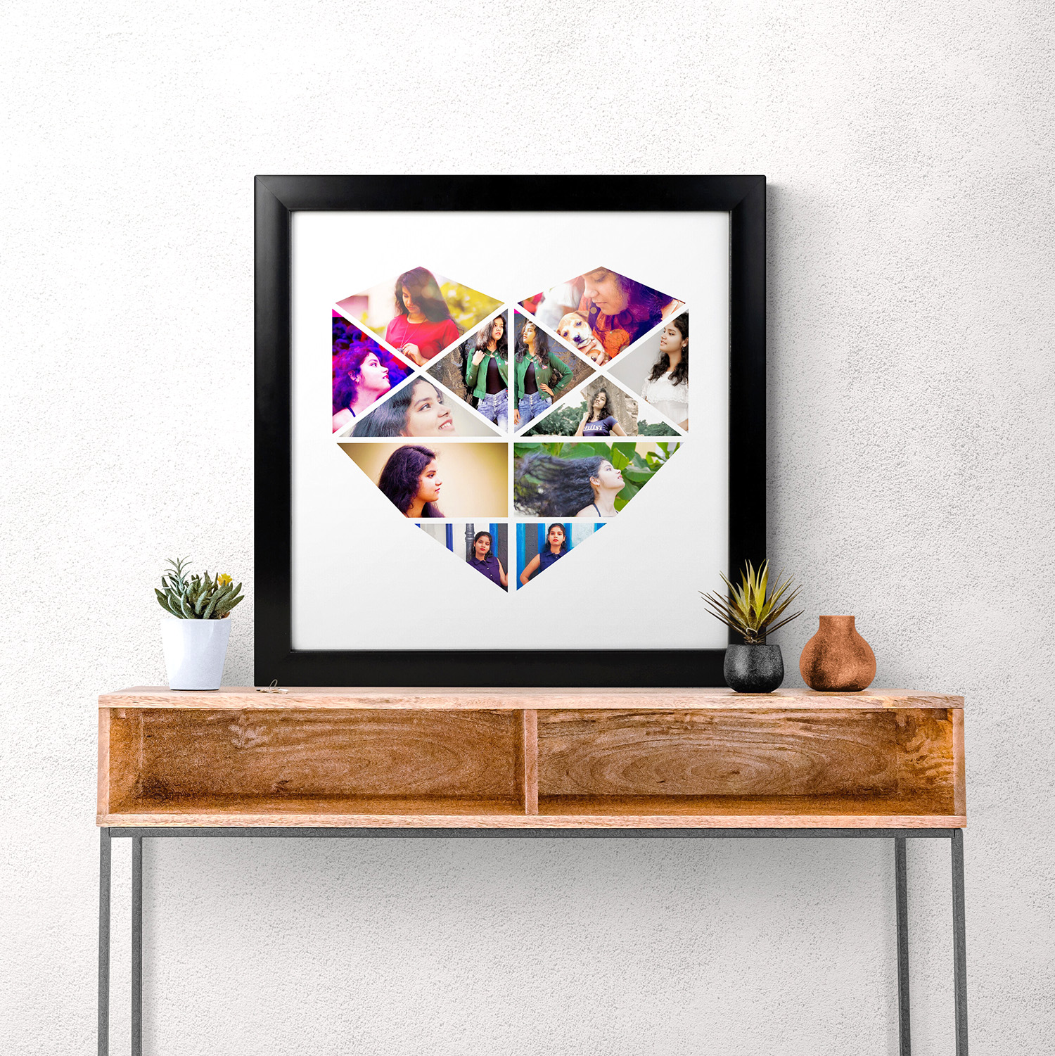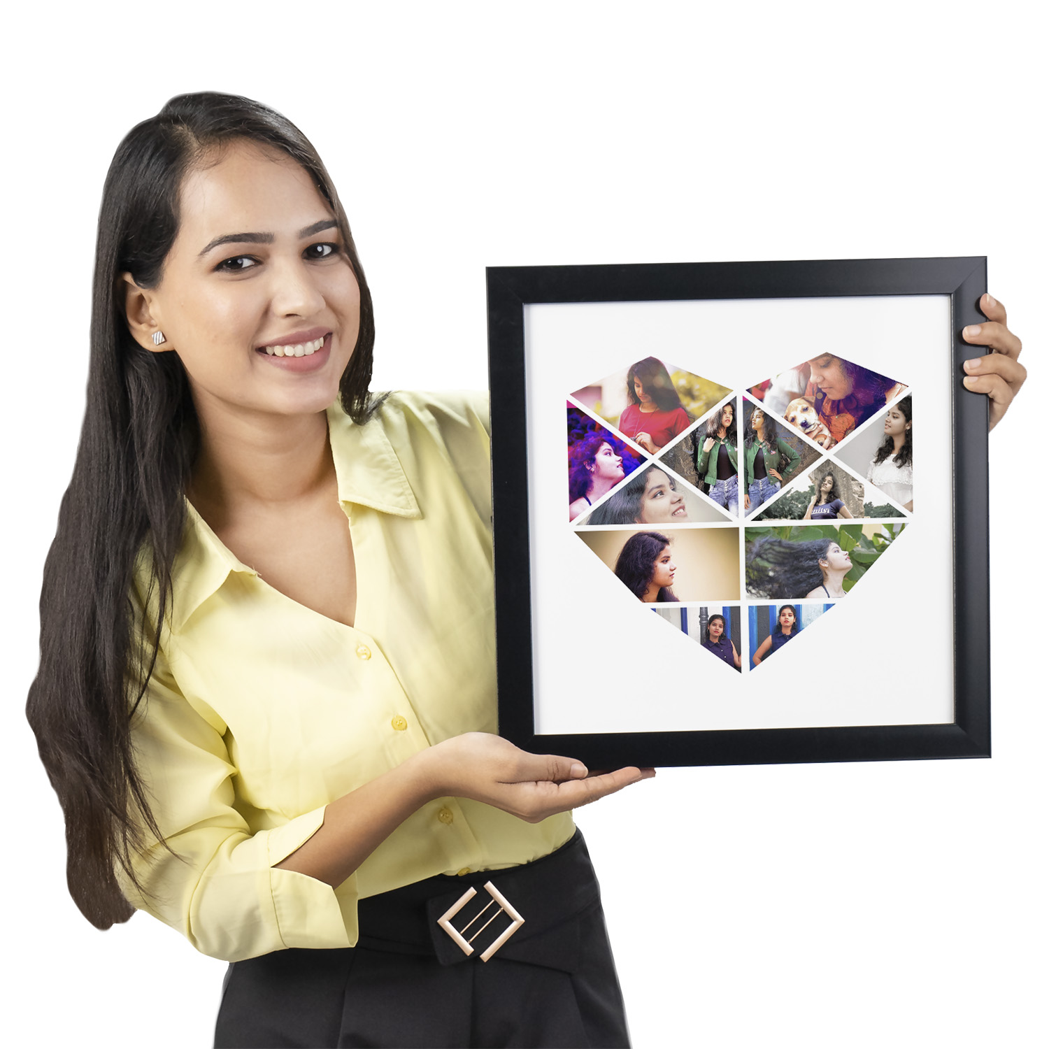 - Give the ultimate personalized gift to your loved one. The Mosaic Story PicHeart collage frame shows your loved one’s photos in a beautiful heart shape collage.