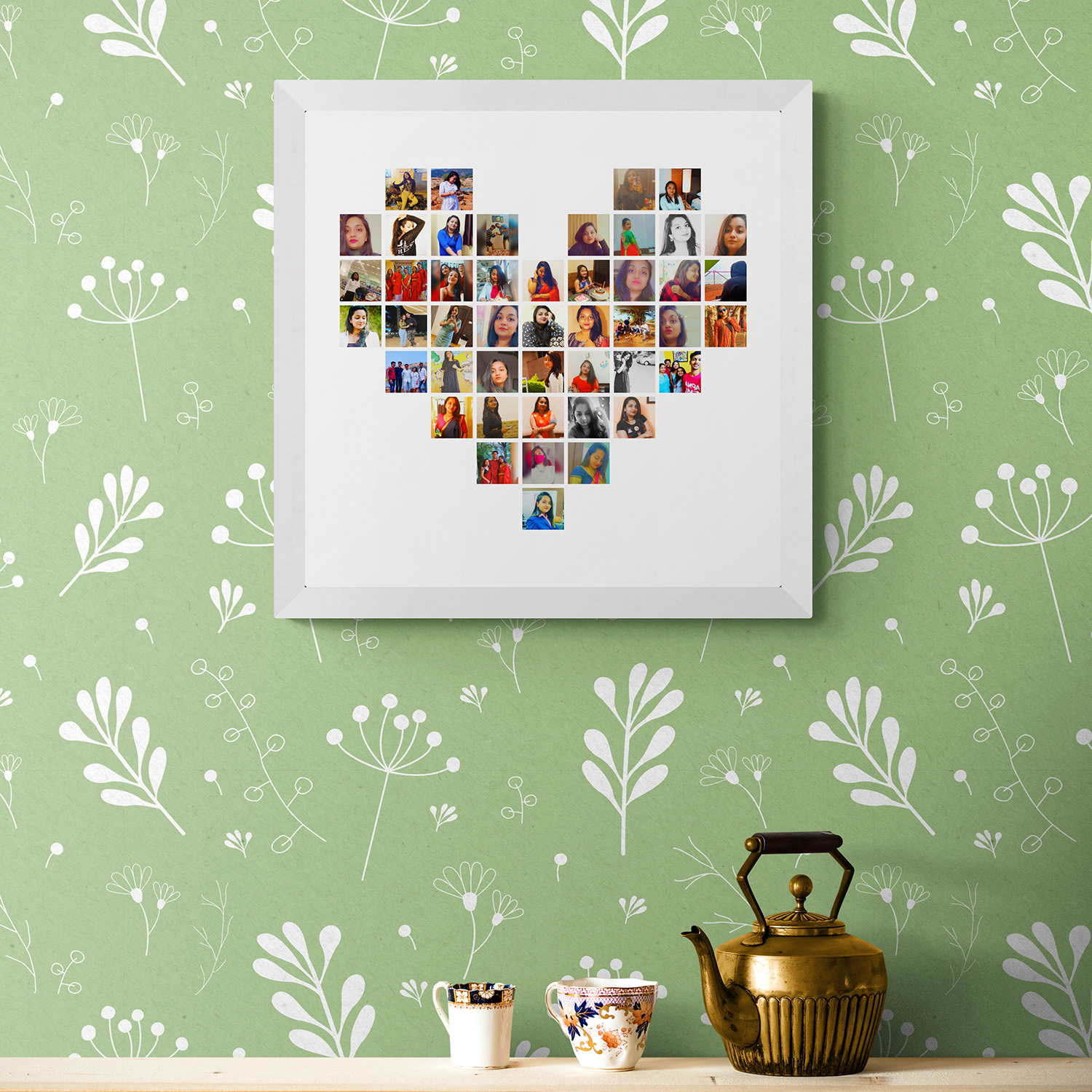 - Give the ultimate personalized gift to your loved one. The Mosaic Story PicHeart collage frame shows your loved one’s photos in a beautiful heart shape collage.