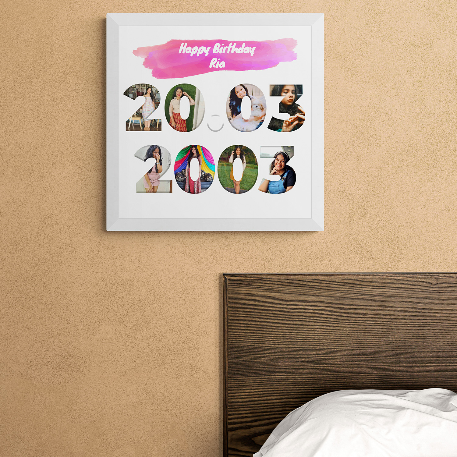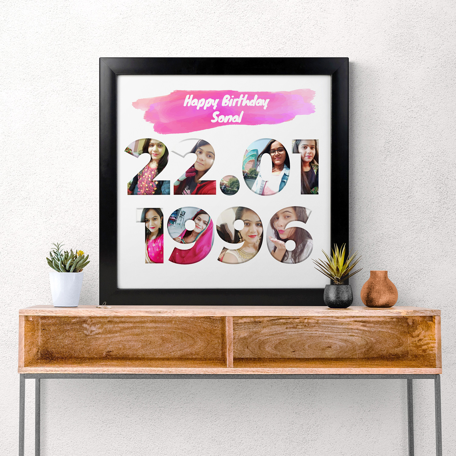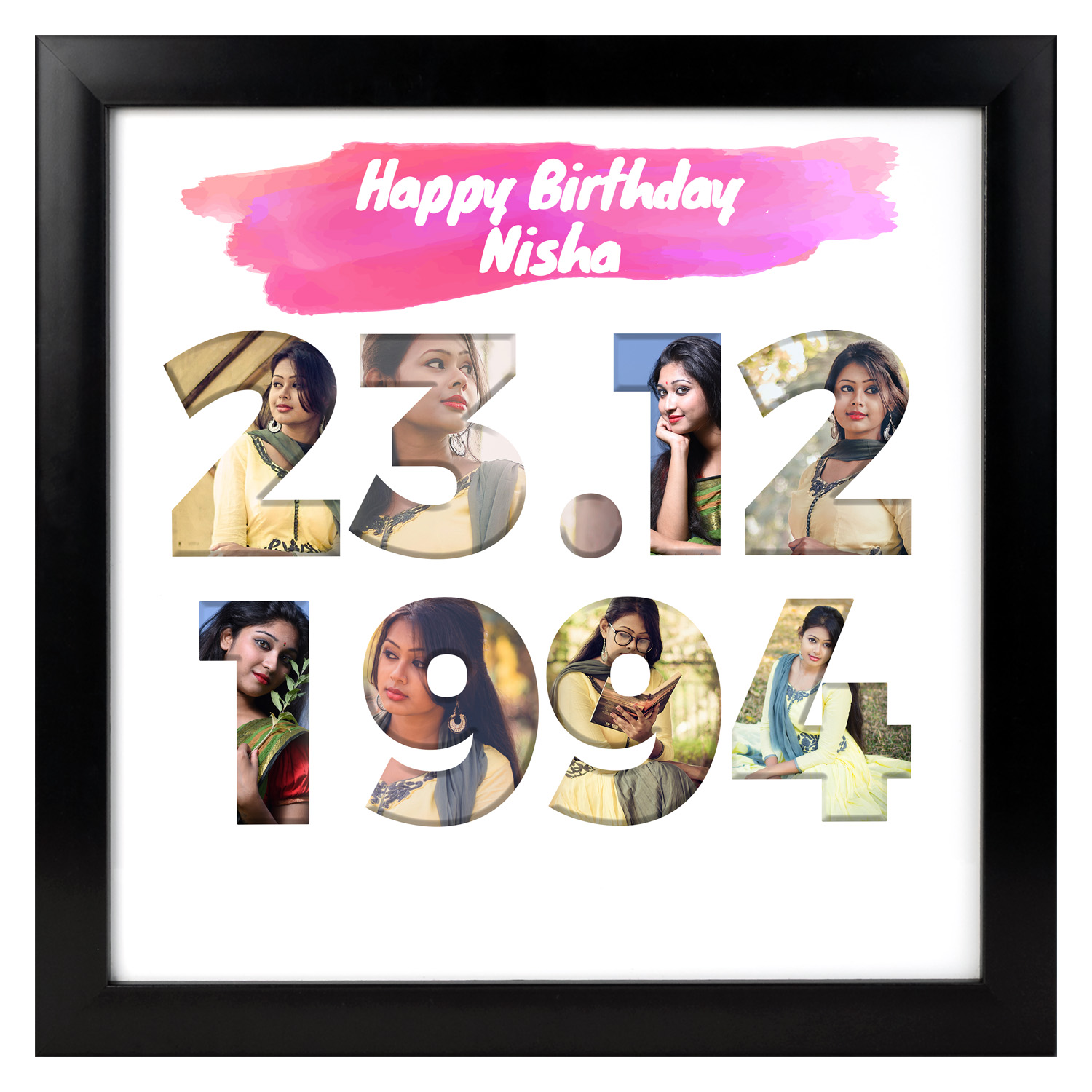- Frame Dimensions: 12×12 Inches, Material: Synthetic 8 pictures, date of birth and recipient name required to make.
